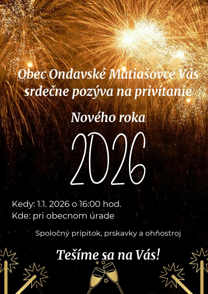 Obec Ondavské Matiašovce Vás srdečne pozýva na privítanie Nového roka 2026.