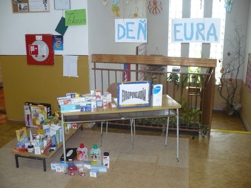 Pri príležitosti 100-tého dňa pred zavedením spoločnej meny Európskej únie na Slovensku, sme v našej škole zorganizovali – Deň eura. Predpríprava na túto akciu bola už v ŠKD (školská družina), kde deti vystrihovali papierové euro mince, euro bankovky, euro pokladne do školských euro obchodov a taktiež maskota celej akcie – Euráčika.
